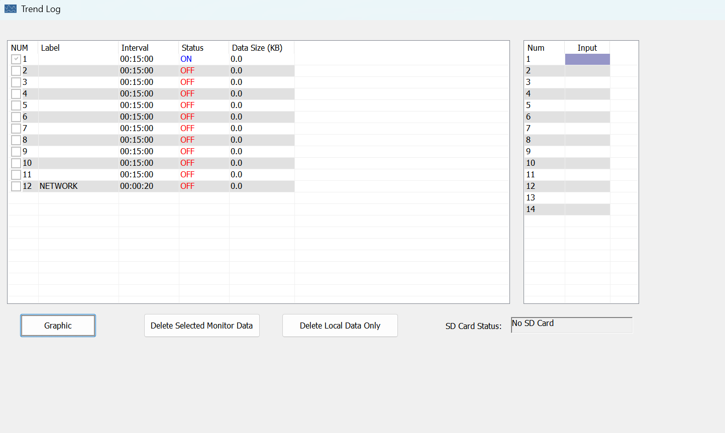 I don’t know how to configure the trend logs. Doesn’t match the user manual I am looking at. I have an input called Z1AT but not clear what to put in which field