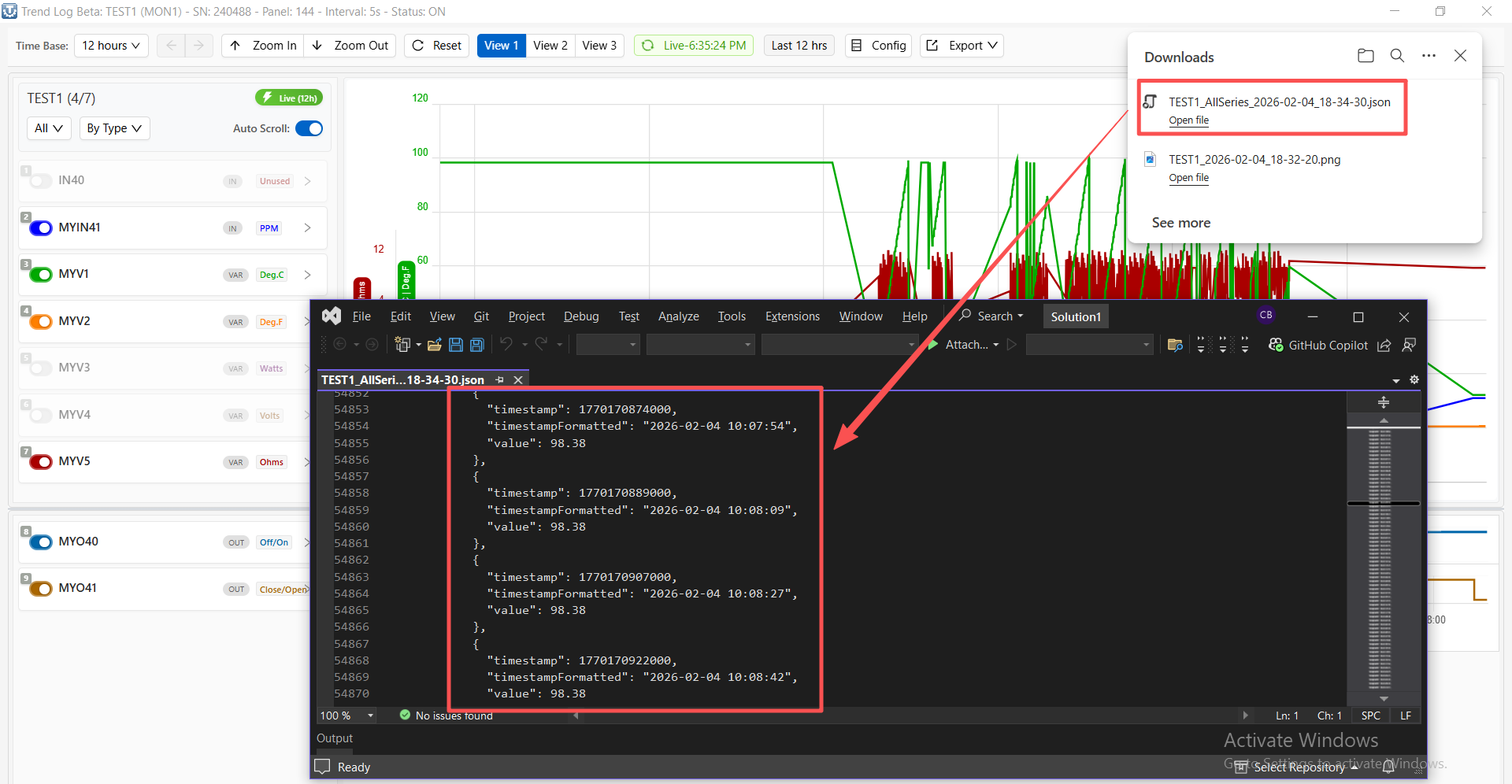 • Supports second-level logging intervals (e.g. 5 s, 10 s), suitable for commissioning and fast-changing signals.