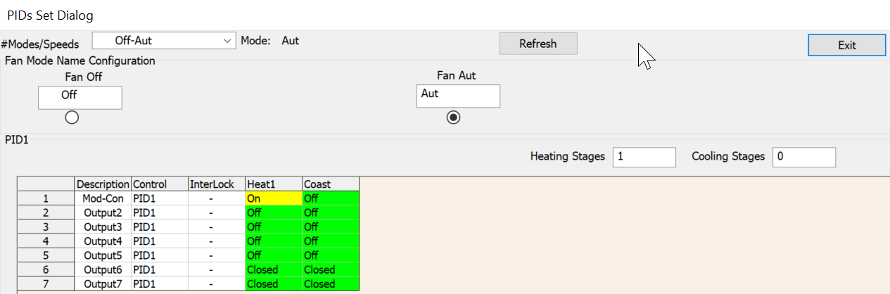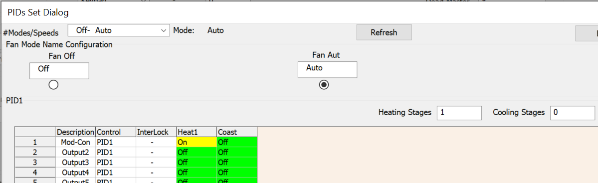 There are several MODES like OFF, ON, AUTO. You will need to configure the output table for each of the modes. This is not always intuitive either.