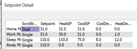I am not clear on the Modes setting ( I assume you mean the 1st selection Off-Aut? ). Not sure where to set the OCCUPIED, UNOCCUPIED? Here are some screen shots so far.