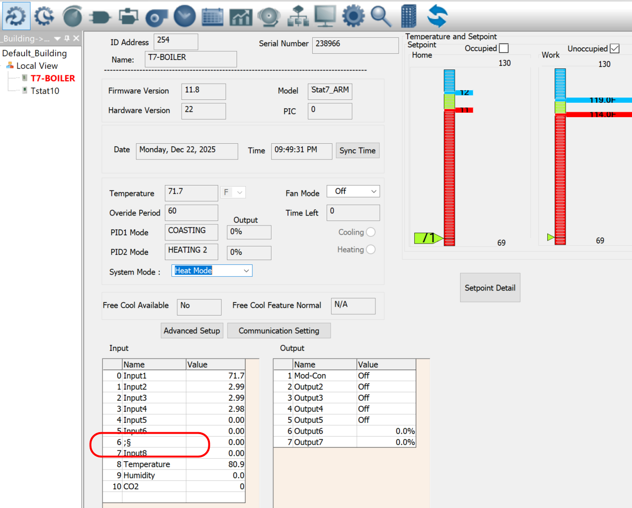I did set the Heat mode to 1 only and no cooling since I just need to monitor the buffer tank and run the boiler accordingly.
